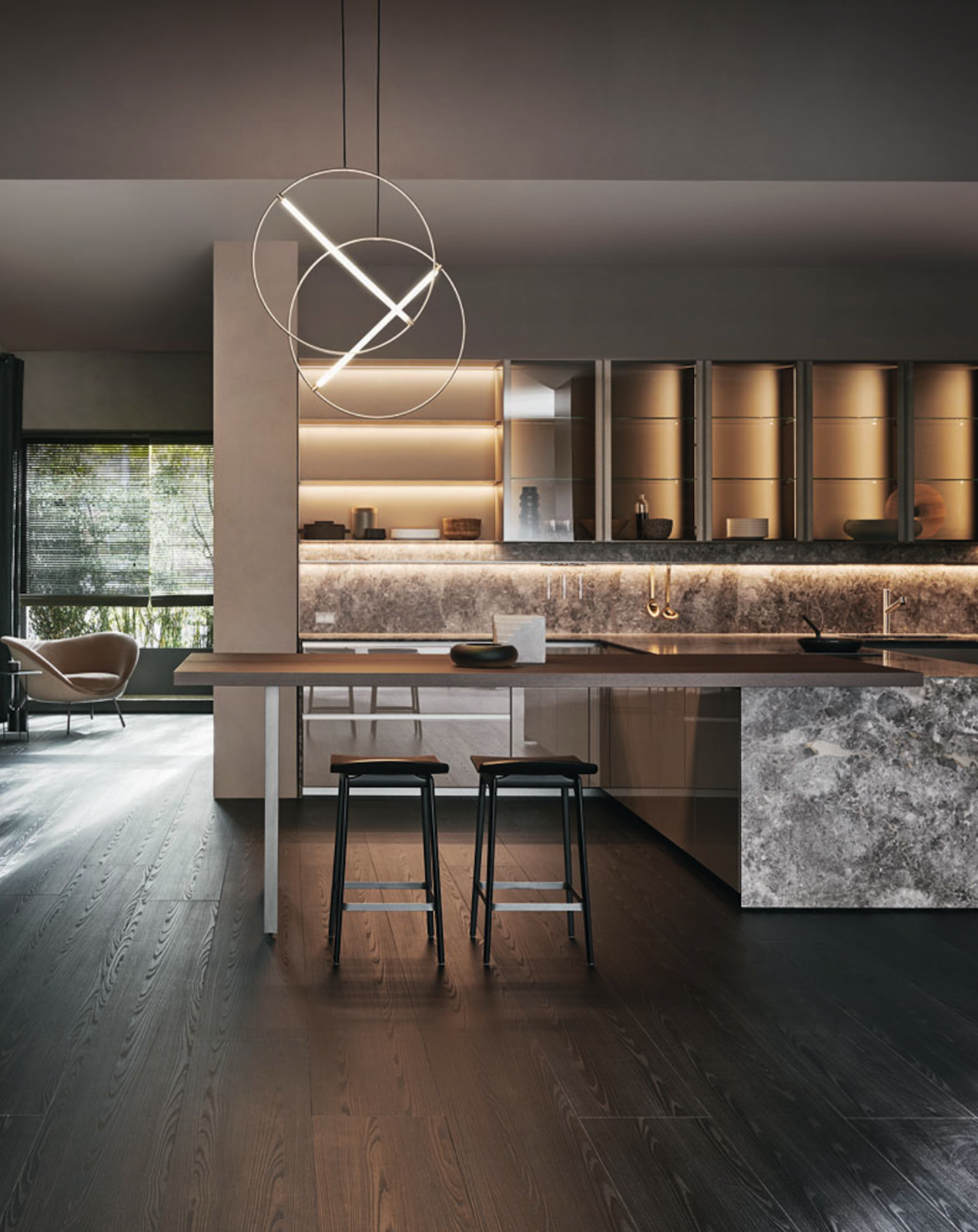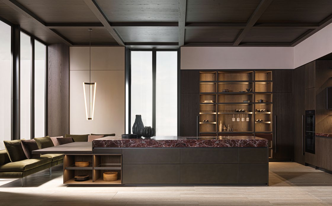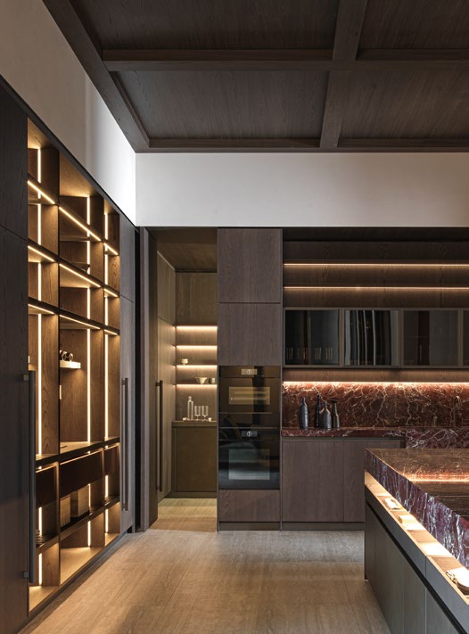 Giorgio Armani’s vision of the home as a private, special place, sophisticated and comfortable at the same time, now comes to the working area of the home. The kitchen is interpreted as a highly practical working space which is also pleasant to the senses, capable of transmitting emotions and atmosphere, just like the living area and bedroom.